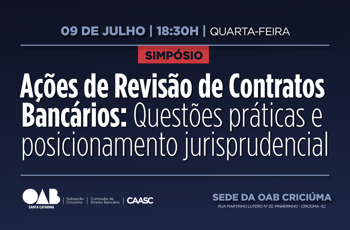 Inscrições abertas: OAB/SC promove simpósio sobre revisão de contratos bancários em Brusque