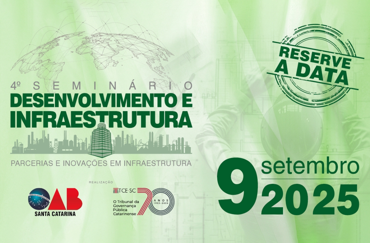 Infraestrutura, oportunidades e atuação jurídica: IV Seminário gratuito da OAB/SC e TCE/SC reúne especialistas em Florianópolis; inscrições abertas