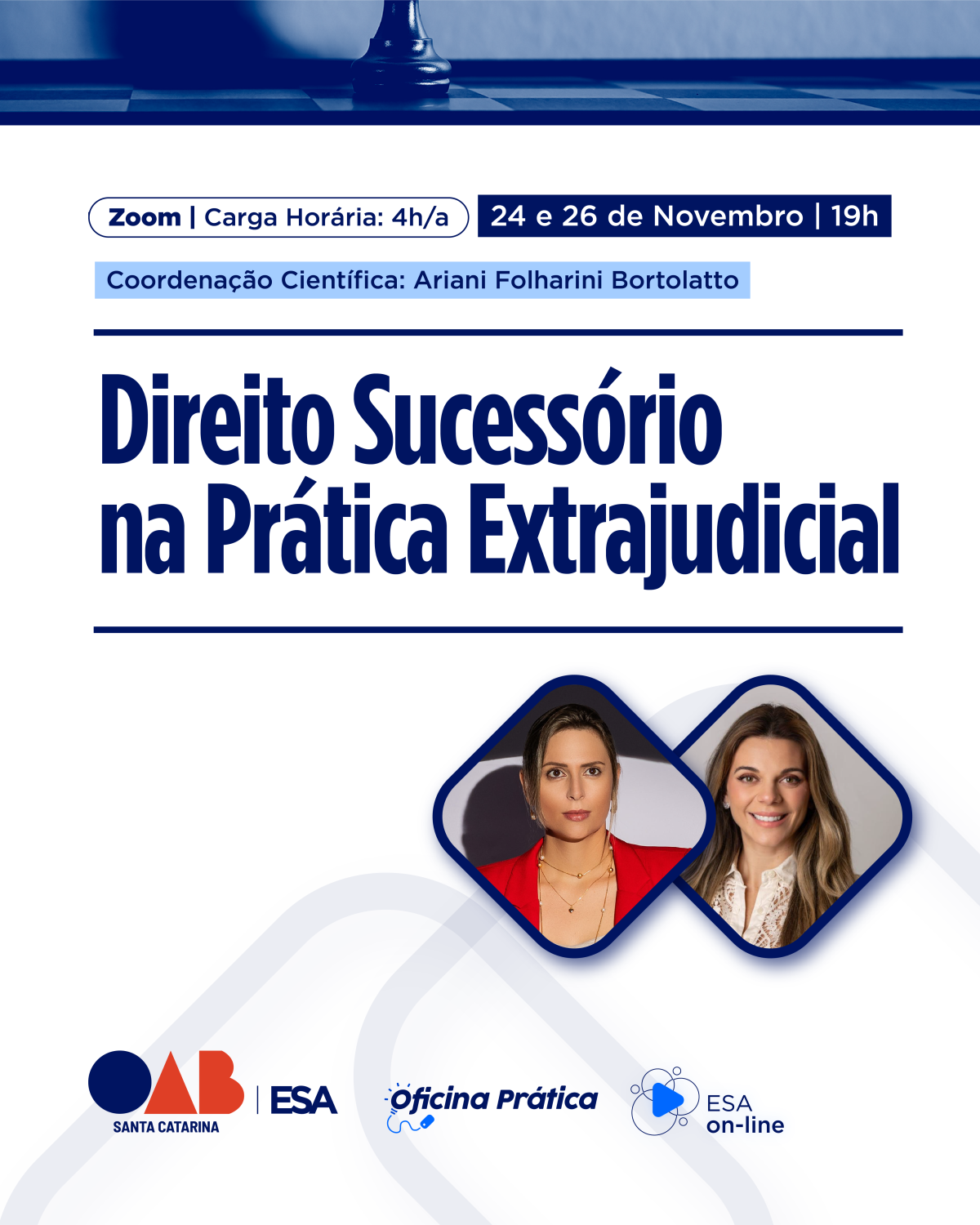 - O certificado estará disponível no site da OAB/SC a partir de 15 dias úteis após o término do curso.
