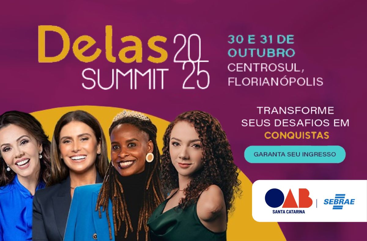 A OAB Santa Catarina, por meio da Comissão Estadual da Mulher Advogada e o Sebrae/SC firmaram parceria institucional para a realização do Delas Summit 2025, que acontecerá nos dias 30 e 31 de outubro, no CentroSul, em Florianópolis. O evento é considerado um dos maiores do Sul do país voltados ao empreendedorismo feminino, liderança e inovação, e terá a advocacia como protagonista em debates e conexões estratégicas.