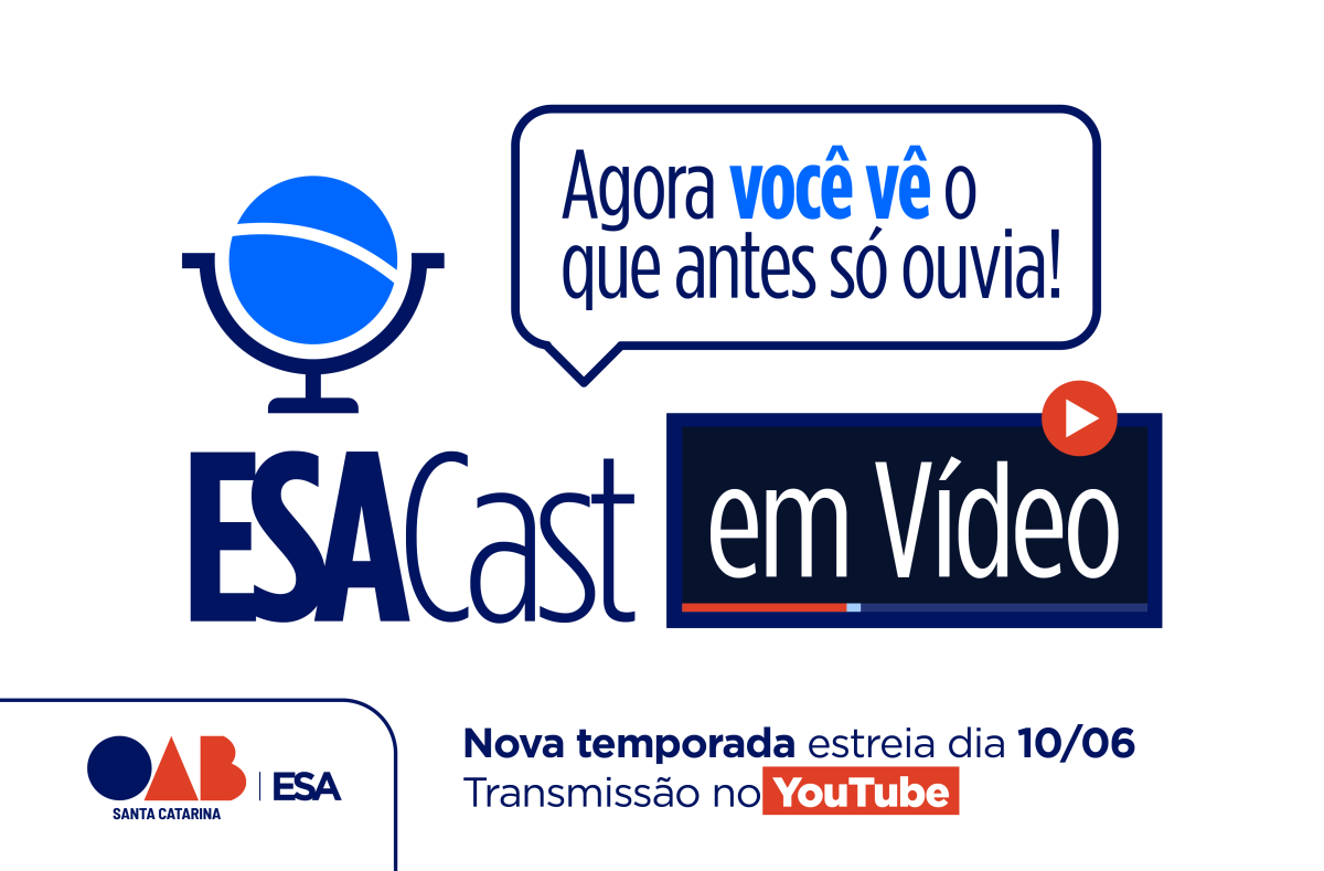 A 4ª temporada do ESACAST chega para marcar um novo capítulo na trajetória do podcast da Escola Superior da Advocacia da OAB/SC. A partir de agora, o programa ganha um novo formato: passa a ser exibido em vídeo e transmitido no canal da ESA/SC no YouTube. A estreia está marcada para o dia 10/06, com um episódio especial, ao vivo, que inaugura essa nova fase do programa, com muito mais conexão com o público.