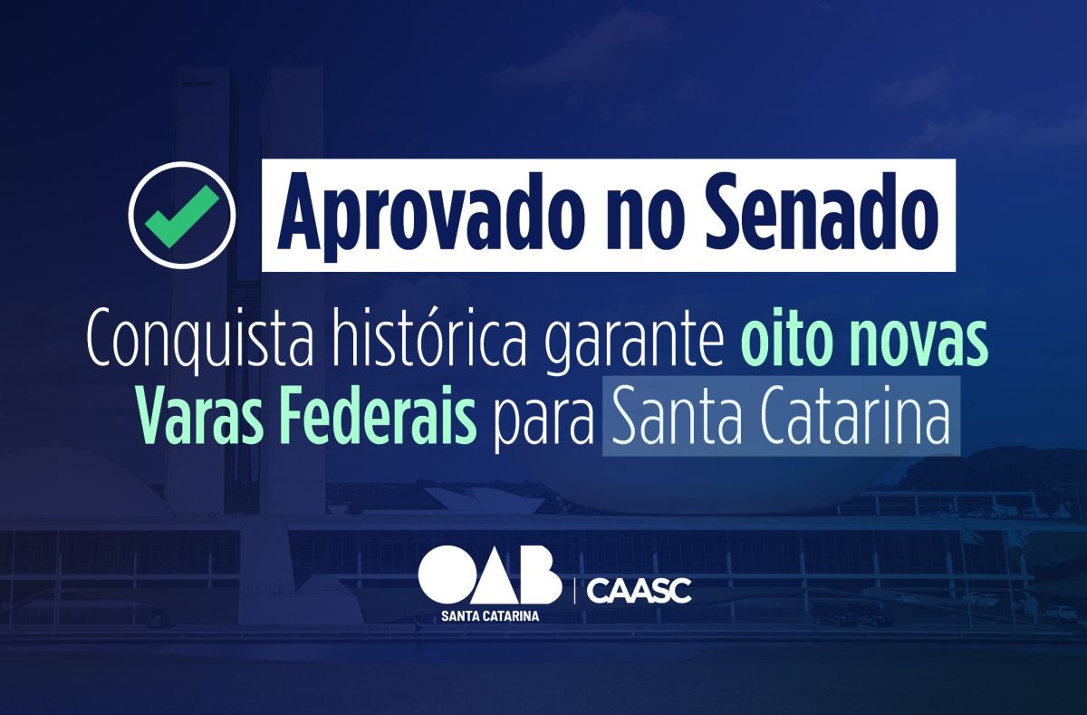 A advocacia catarinense conquistou um marco histórico para fortalecer a jurisdição da Justiça Federal no Estado. Foi aprovado, nesta terça-feira (1º), no Plenário do Senado Federal, o Projeto de Lei nº 1/2025, que autoriza a criação de oito novas Varas Federais no âmbito do Tribunal Regional Federal da 4ª Região (TRF4), todas em Santa Catarina. Agora, o PL segue diretamente para a sanção presidencial.