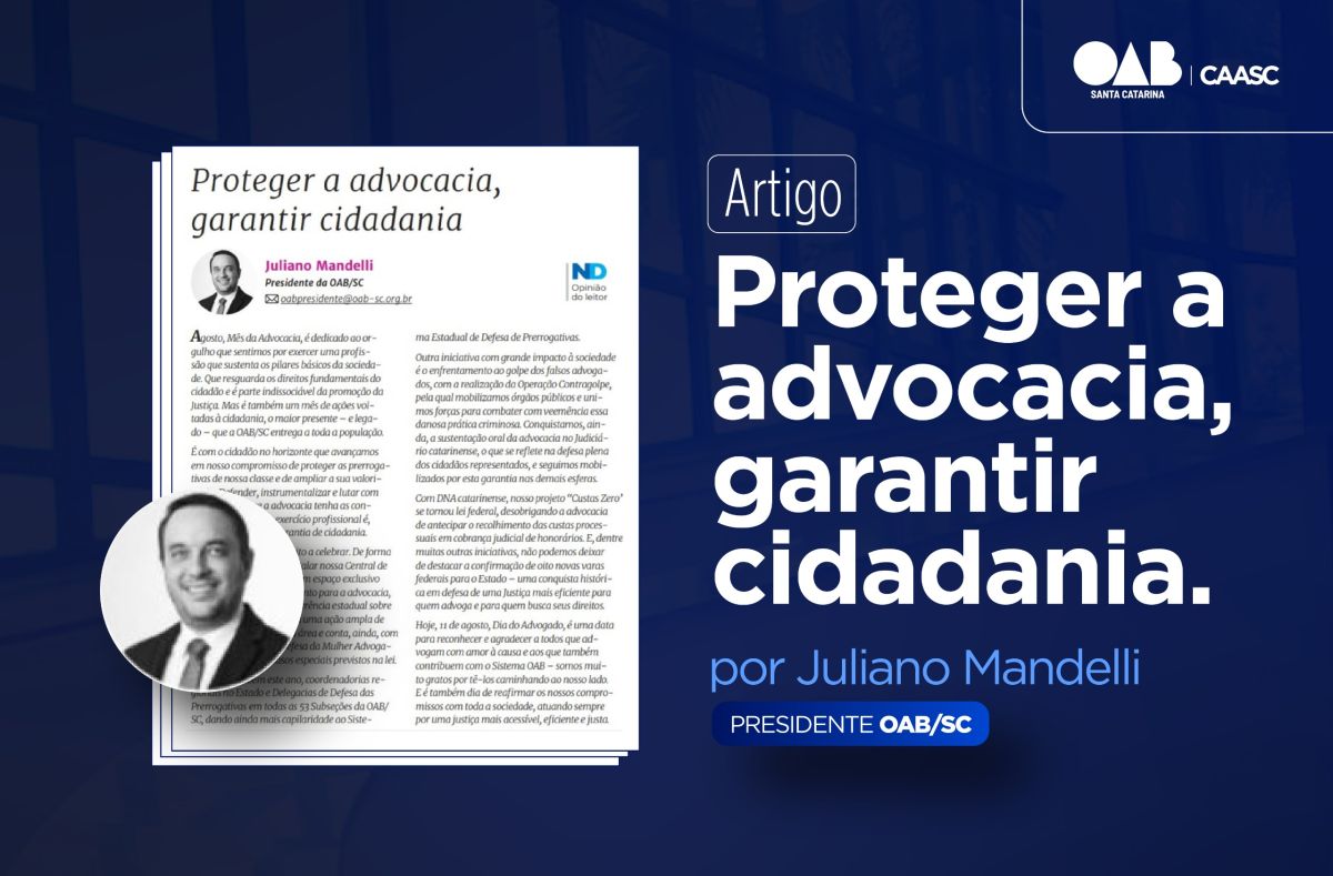 Agosto, Mês da Advocacia, é dedicado ao orgulho que sentimos por exercer uma profissão que sustenta os pilares básicos da sociedade. Que resguarda os direitos fundamentais do cidadão e é parte indissociável da promoção da Justiça. Mas é também um mês de ações voltadas à cidadania, o maior presente – e legado – que a OAB/SC entrega a toda a população.