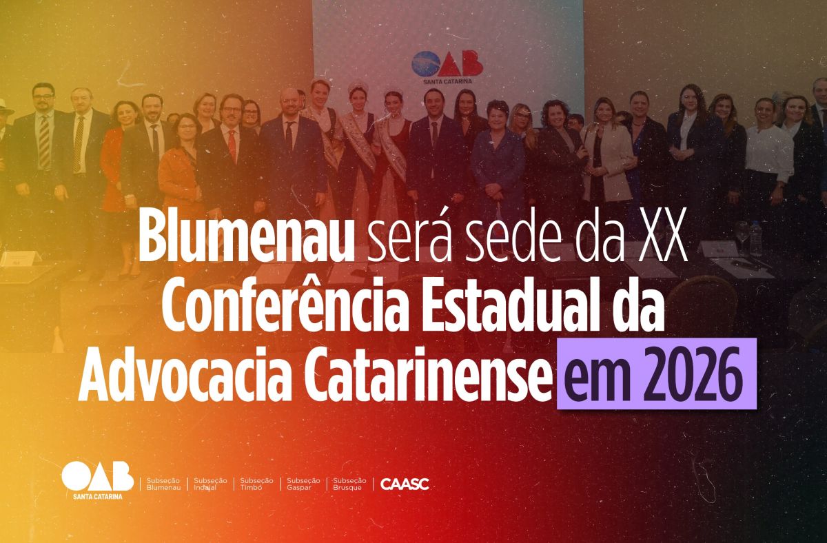 Destino confirmado: a advocacia catarinense já pode marcar na agenda que Blumenau será o palco da 20ª edição da Conferência Estadual da Advocacia, no primeiro semestre de 2026. A escolha, aprovada por aclamação em Sessão do Conselho Pleno da OAB/SC nesta sexta-feira (18), valoriza o protagonismo das Subseções de Blumenau, Timbó, Indaial, Gaspar e Brusque, e reafirma o compromisso da OAB/SC com a interiorização das ações institucionais.