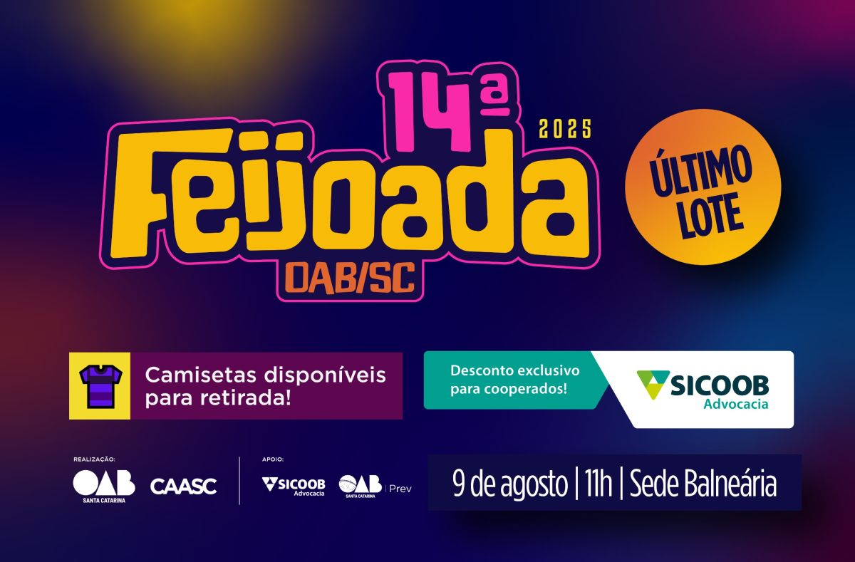 A contagem regressiva já começou! A 14ª edição da tradicional Feijoada da Advocacia Catarinense está chegando e, para garantir que tudo esteja pronto para o grande dia, as camisetas do evento estão disponíveis para retirada.