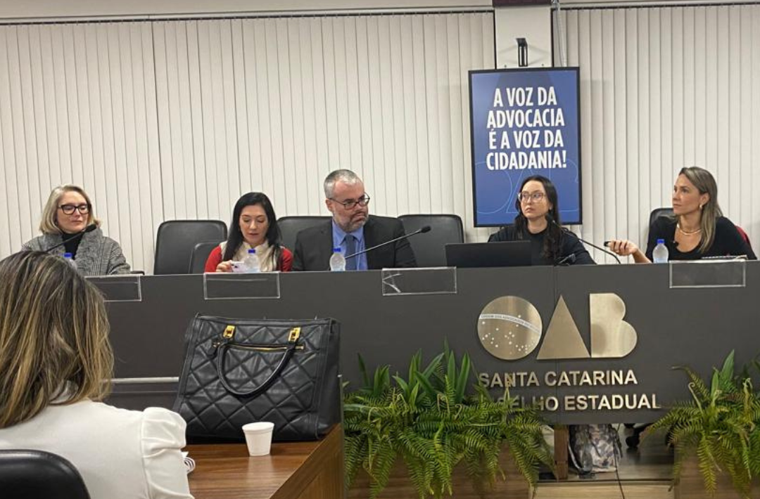 Gisele Kravchychyn, vice-presidente da OAB/SC, destacou a importância do tema da reunião: "O debate sobre Regime Próprio exige técnica e articulação. Reunir comissões fortalece nossa capacidade de incidir com qualidade. Esse diálogo é essencial para a defesa da advocacia e do servidor público."