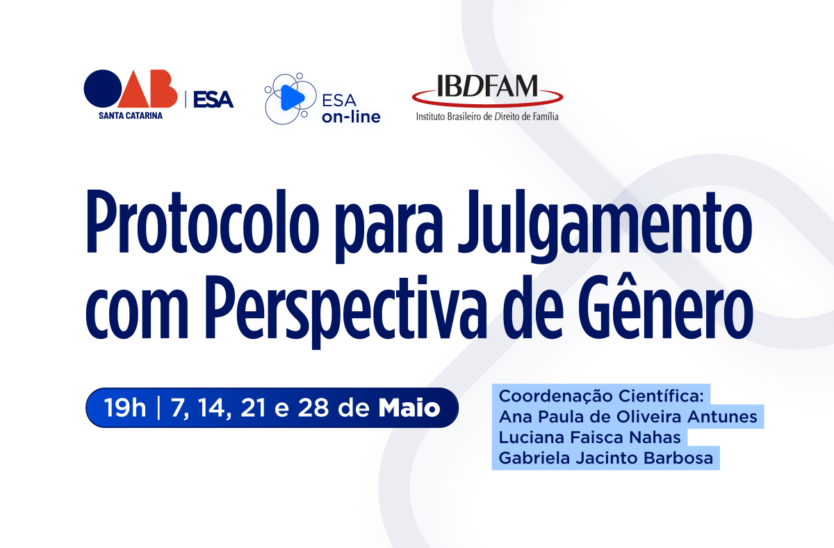 A compreensão e a aplicação do Protocolo para Julgamento com Perspectiva de Gênero têm ganhado cada vez mais espaço nos tribunais, nos escritórios de advocacia e nas salas de aula. Com o objetivo de aprofundar esse debate sob a ótica da prática jurídica, a Escola Superior da Advocacia da OAB/SC (ESA/SC) promove, durante o mês de maio, o curso “Protocolo para Julgamento com Perspectiva de Gênero”. A formação é totalmente online, gratuita e com certificação.