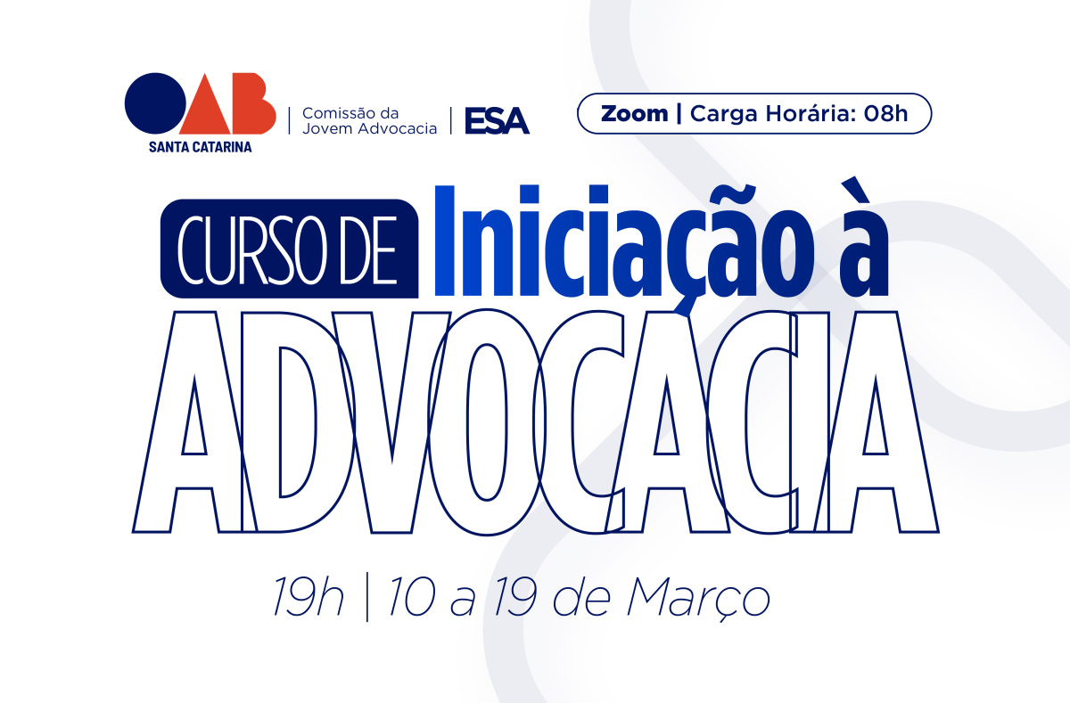 A Comissão da Jovem Advocacia da OAB/SC, em parceria com a Escola Superior de Advocacia de Santa Catarina (ESA/SC) e a Diretoria de Iniciação Profissional, promove, de 10 a 19 de março, o curso de Iniciação à Advocacia. As aulas serão realizadas sempre às 19h, em formato on-line.