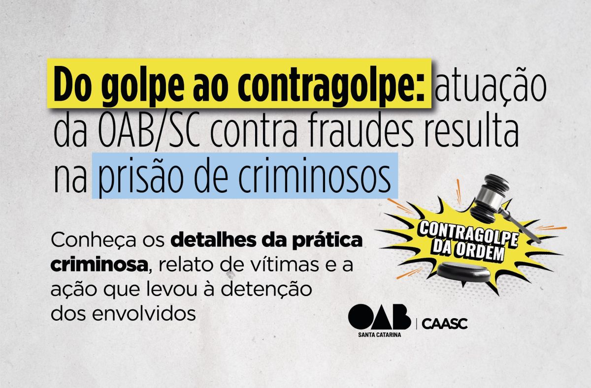 O foco é atingir diretamente a engrenagem dos golpes, que têm como alvos cidadãos com processos na Justiça. “Essa é uma frente de atuação direta da OAB com as autoridades, em que vamos reunir provas e indícios, atender advogados e advogadas, além de orientar a população e nossos clientes”, afirmou o presidente da OAB/SC, Juliano Mandelli.