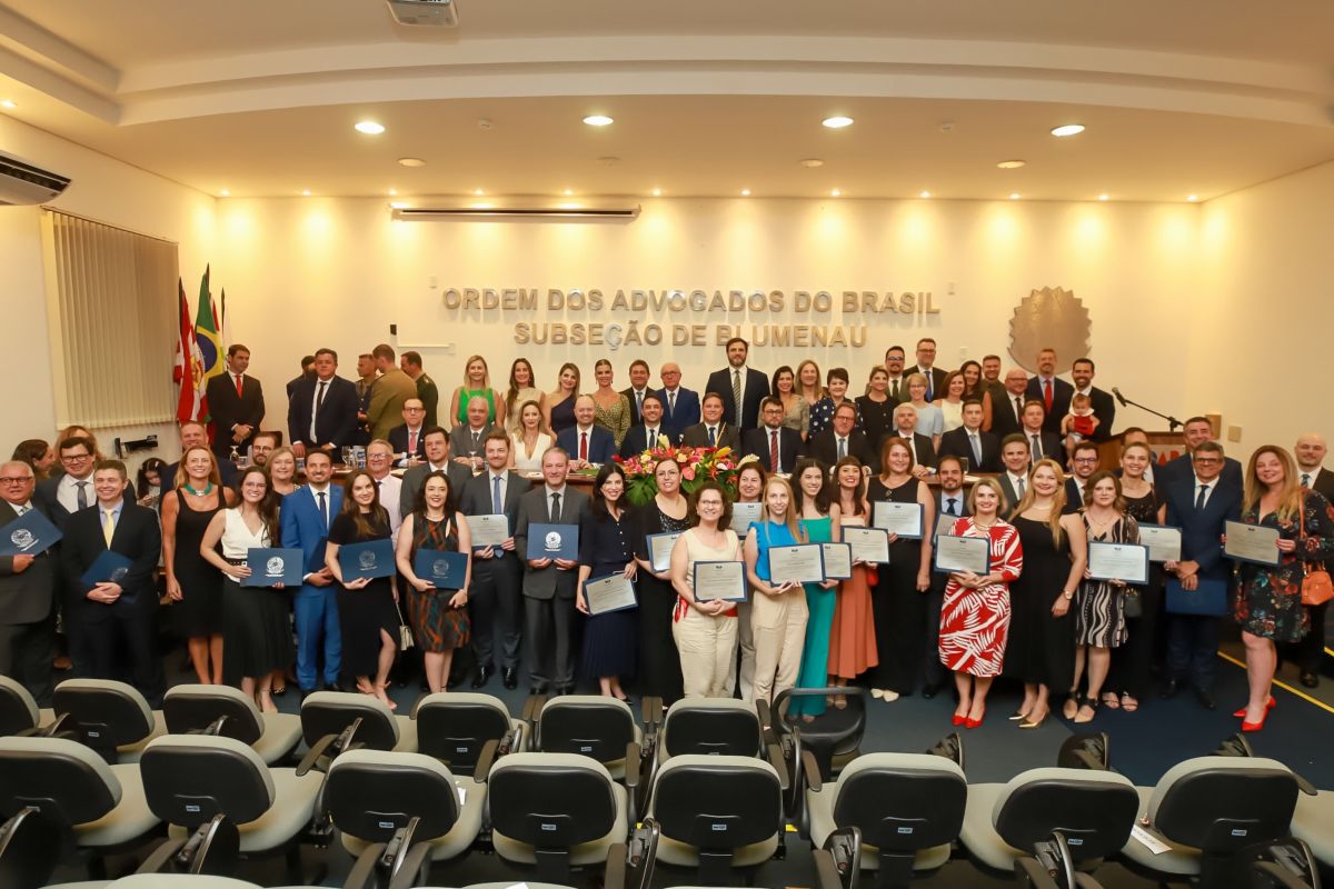“Este momento celebra a essência da democracia e da renovação que tornam a OAB indispensável para a sociedade brasileira”, declarou o presidente Juliano Mandelli, na noite desta segunda-feira (24), na solenidade de posse da gestão triênio 2025/2027 da OAB Blumenau. O evento ocorreu na sede da entidade, no bairro Escola Agrícola, em Blumenau.