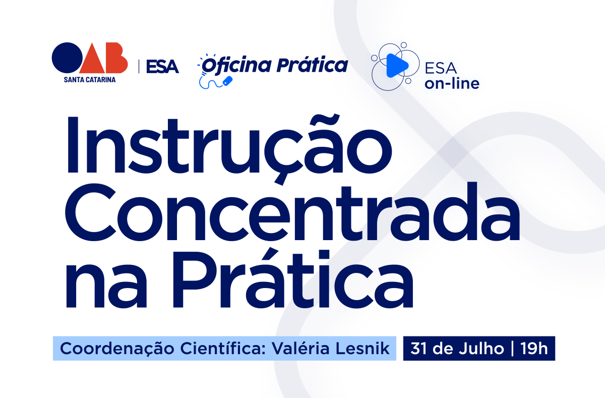 Com foco na atuação prática da advocacia previdenciária, a Escola Superior da Advocacia da OAB/SC (ESA/SC) promove no dia 31 de julho, das 19h às 22h, o curso “Instrução Concentrada na Prática”, em formato 100% online via Zoom.