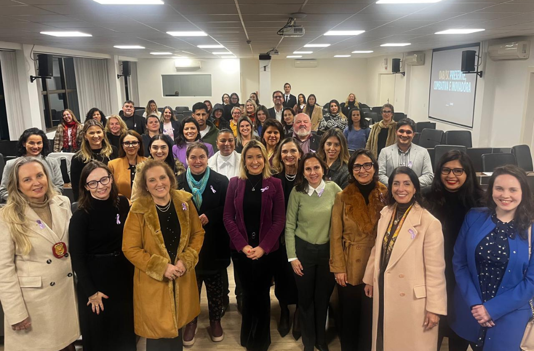 Na noite desta segunda-feira (25), a OAB Santa Catarina promoveu, no plenário da Seccional, a palestra “O importante papel dos grupos reflexivos na prevenção e combate às violências contra as mulheres no presente e no futuro”. O evento reuniu advogadas, autoridades do sistema de justiça, representantes de instituições parceiras e especialistas de diversas áreas, criando um espaço de diálogo voltado a refletir sobre práticas inovadoras e eficazes no enfrentamento da violência de gênero.