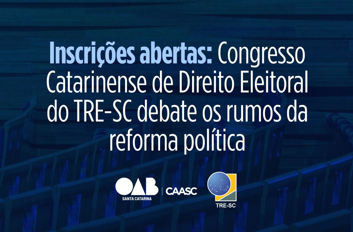 Estão abertas as inscrições para o Congresso Catarinense de Direito Eleitoral: Reforma Político-Eleitoral, que ocorre entre 17 e 19 de novembro. O evento, realizado pelo Tribunal Regional Eleitoral catarinense e pela Escola Judiciária Eleitoral de SC, tem como objetivo promover um espaço de debate e reflexão sobre a reforma política no âmbito do direito eleitoral.