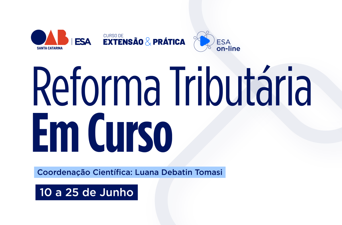 A Reforma Tributária é um dos assuntos mais relevantes e complexos da atualidade, com impactos diretos sobre a atividade econômica e a atuação profissional da advocacia. Atenta à importância do tema, a Escola Superior de Advocacia da OAB/SC, promove o curso “Reforma Tributária em Curso”, que reunirá alguns dos mais respeitados especialistas da área para um mergulho nas mudanças em andamento no sistema tributário brasileiro.