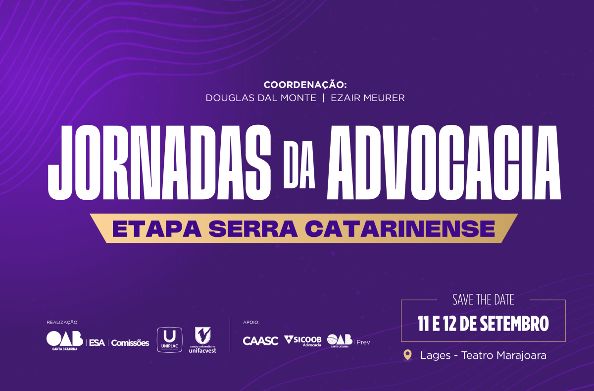 A OAB Santa Catarina leva, nos dias 11 e 12 de setembro, para Lages, mais uma etapa das Jornadas da Advocacia — um dos principais movimentos de qualificação e valorização da advocacia catarinense. Com programação presencial nas universidades Uniplac e Unifacvest, a iniciativa propõe conteúdo técnico de excelência, debates atuais e diálogo direto com as comissões temáticas da OAB/SC. As inscrições já estão abertas e podem ser feitas aqui.