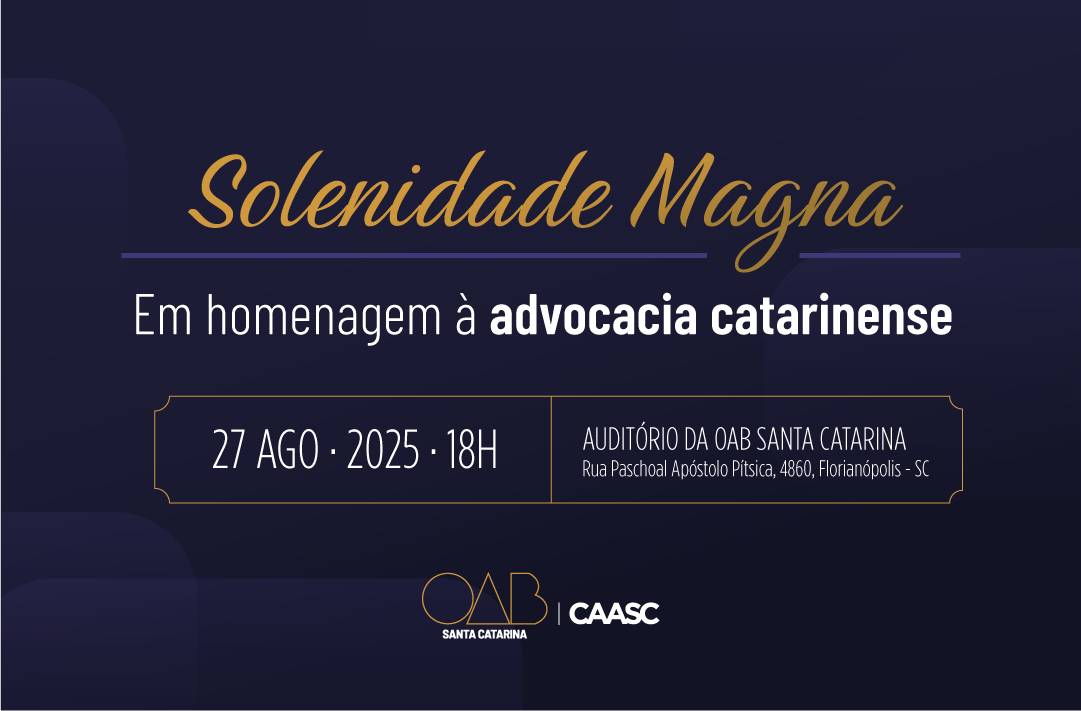 A Ordem dos Advogados do Brasil em Santa Catarina realiza nesta quarta-feira (27), a Solenidade Magna em homenagem à Advocacia Catarinense, marcada pela entrega das mais altas distinções concedidas pela Seccional: a Medalha Nereu Ramos e a Medalha João Baptista Bonassis.