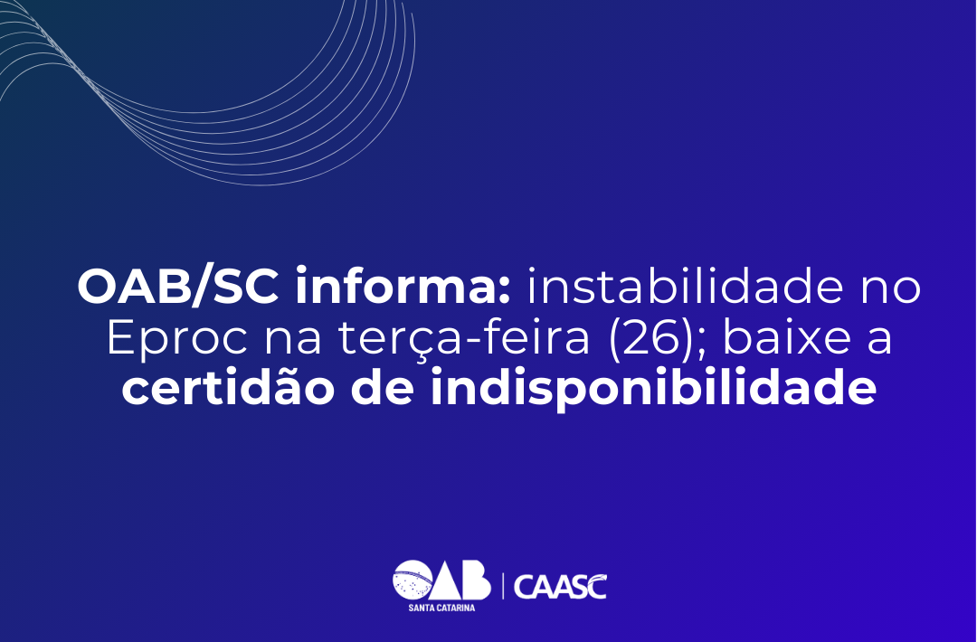 O Tribunal de Justiça de Santa Catarina (TJSC) certificou, nesta terça-feira (26), a indisponibilidade do sistema eproc por motivos técnicos.