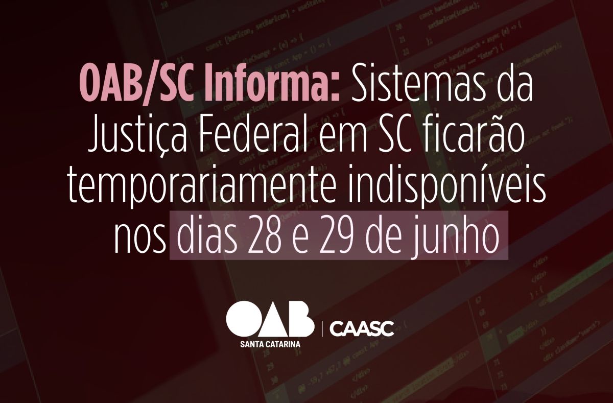 A OAB Santa Catarina informa que os sistemas digitais da Justiça Federal de Santa Catarina estarão temporariamente inoperantes nos dias 28 e 29 de junho de 2025 (sábado e domingo), em razão da migração da solução de firewall NGFW (Next Generation Firewall).