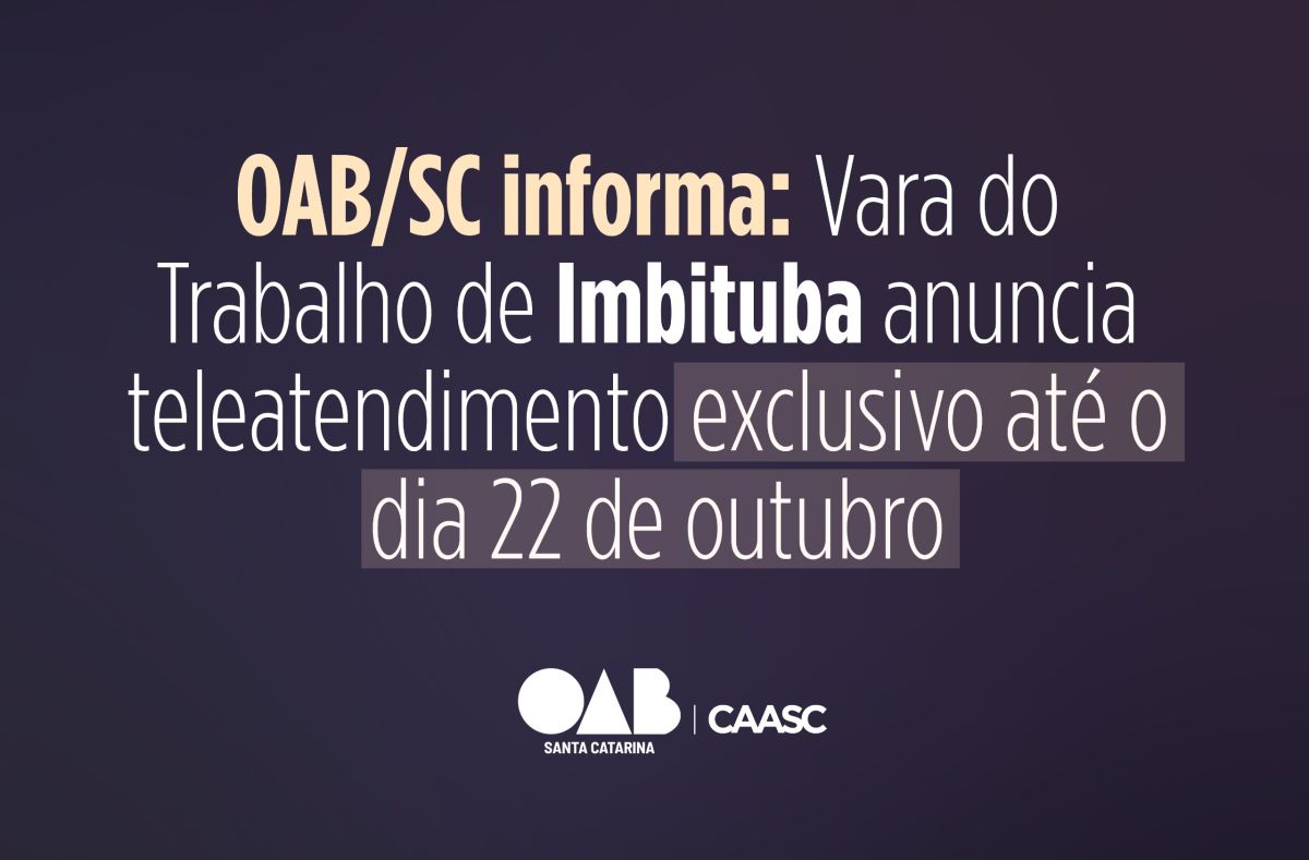 A OAB Santa Catarina informa que a Vara do Trabalho de Imbituba passa a realizar atendimentos exclusivamente online entre os dias 6 e 22 de outubro de 2025.