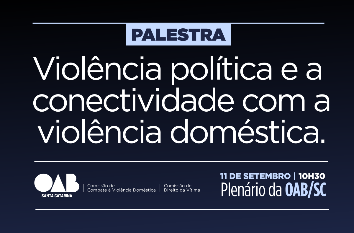 A violência política e a violência doméstica, embora ocorram em contextos distintos, possuem raízes comuns: ambas buscam silenciar, intimidar e excluir mulheres de espaços de participação e decisão. Para aprofundar esse debate e ampliar a conscientização sobre suas intersecções, a OAB/SC, por meio das comissões de Combate à Violência Doméstica e Direito da Vítima, promove a palestra “Violência política e a conectividade com a violência doméstica” nesta quinta-feira (11/09), às 10h30, no plenário da Seccional.