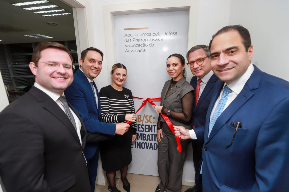 Presenças: Jean Leomar Pereira, diretor tesoureiro da OAB/SC; Debora Lazzaris Pinto, tesoureira-adjunta da OAB/SC; Rui Cesar Voltolini, diretor de Defesa das Prerrogativas e Valorização da Advocacia; Isabela Medeiros, diretora administrativa da OAB/SC; Jorge Mazera, diretor de Relacionamento com a Justiça Federal da OAB/SC; Luis Irapuan Bessa Neto, diretor de Relacionamento com a Justiça Eleitoral da OAB/SC; Isadora Barth, diretora de Iniciação Profissional da OAB/SC; Cesar Wolf, diretor de Relações Institucionais da OAB/SC; Helena Pitsica, diretora de Educação Jurídica da OAB/SC; Vanessa Barcelos, diretora de Tecnologia e Inovação da OAB/SC; Rodrigo Goetten de Almeida, diretor de Atendimento da OAB/SC.