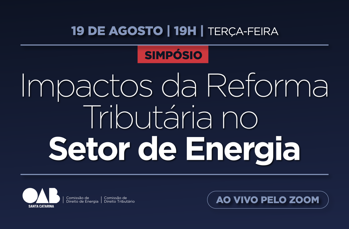A reforma tributária traz mudanças significativas que impactam diretamente a geração, distribuição e consumo de energia. Pensando nisso, a OAB/SC promove, no dia 19 de agosto, das 19h30 às 21h30, o simpósio “Impactos da Reforma Tributária no Setor de Energia”. O evento é gratuito e dará direito a certificado de participação.