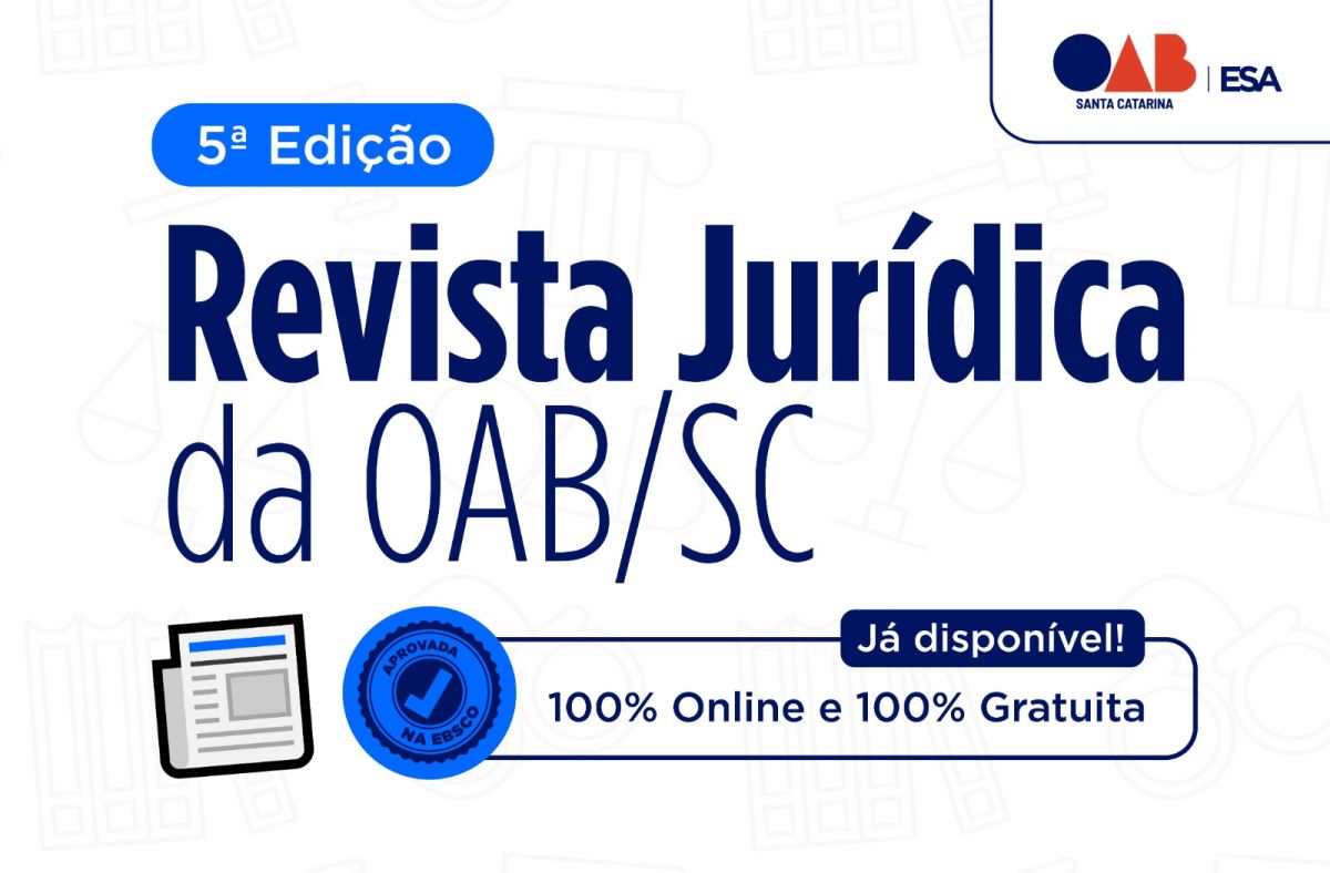 A Revista Jurídica da OAB/SC continua sendo um espaço de referência para a produção acadêmica e jurídica em Santa Catarina. Nesta terça-feira, 9 de setembro de 2025, foi publicada a 5ª edição, reunindo artigos de profissionais e acadêmicos que contribuem para o debate e a reflexão sobre temas centrais do Direito. Confira aqui.